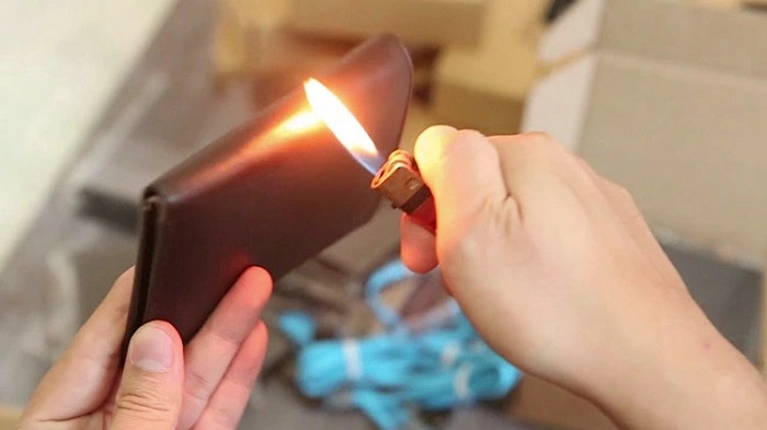 Hiện nay, có rất nhiều thông tin cho rằng dùng lửa có thể phân biệt được da bò thật và giả da. Tuy cách này đúng nhưng không khả quan. Đúng là da bò thật sẽ khó cháy hơn là da làm từ nhựa PVC, da Simili, PU nhưng bạn không nên áp dụng này bởi những lý do sau đây: