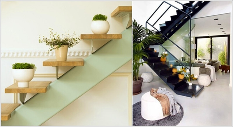 Cầu thang, giếng trời nên đặt những cây có thân trụ to, nhiều lá nhưng lá mềm mại mang lại cảm giác uyển chuyển, nhẹ nhàng.