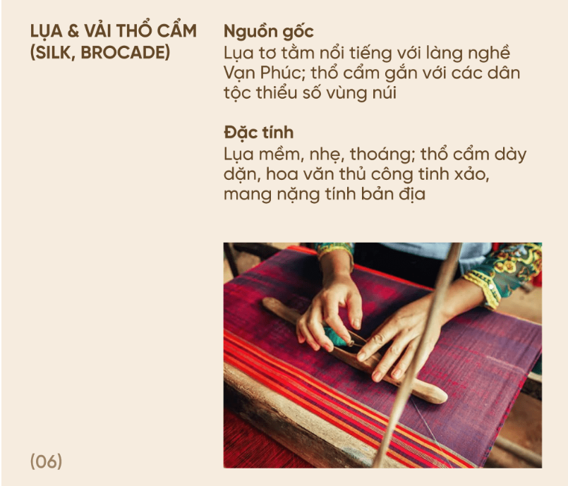 Lụa và thổ cẩm là biểu tượng của bàn tay khéo léo và tâm hồn Việt. Chúng mang đến cho không gian sống sự sang trọng, tinh tế, đồng thời gợi nhắc về nguồn cội và sắc màu văn hóa đa dạng của dân tộc.