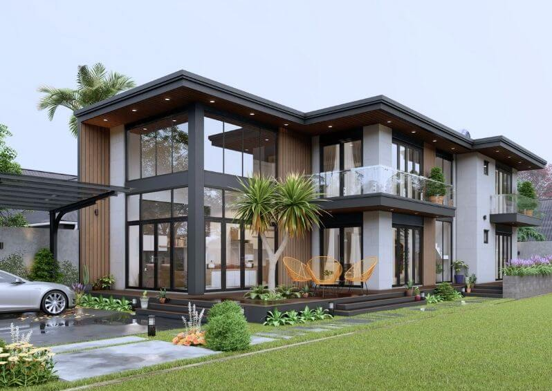 Những thiết kế yêu cầu mặt dựng phức tạp, cửa kính khổ lớn hoặc nội thất âm tường đều đẩy chi phí lên đáng kể so với bản vẽ trông có vẻ đơn giản.
