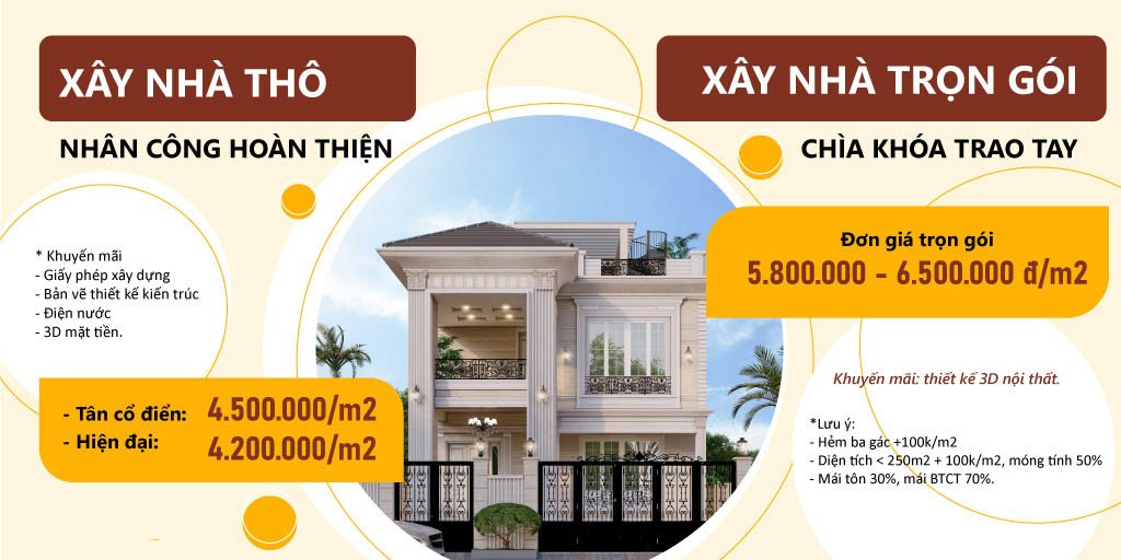 - Giá xây trọn gói: 5.000.000đ/m2.