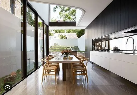Ưu điểm của vật liệu kính là khả năng truyền sáng tuyệt vời mà vẫn đảm bảo sự ngăn chia các khu vực chức năng. Nó giúp mở rộng tầm nhìn, tạo cảm giác liền mạch và rộng rãi cho dù diện tích thực tế không đổi. Vách kính, cửa kính lùa còn mang tính thẩm mỹ cao, phù hợp với mọi phong cách từ tối giản đến sang trọng.