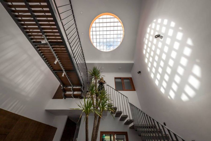 Ngoài ra giếng trời cũng được thiết kế để lấy gió tự nhiên từ ngoài vào trong nhà giúp không gian trong nhà được làm mát và thông thoáng hơn rất nhiều.