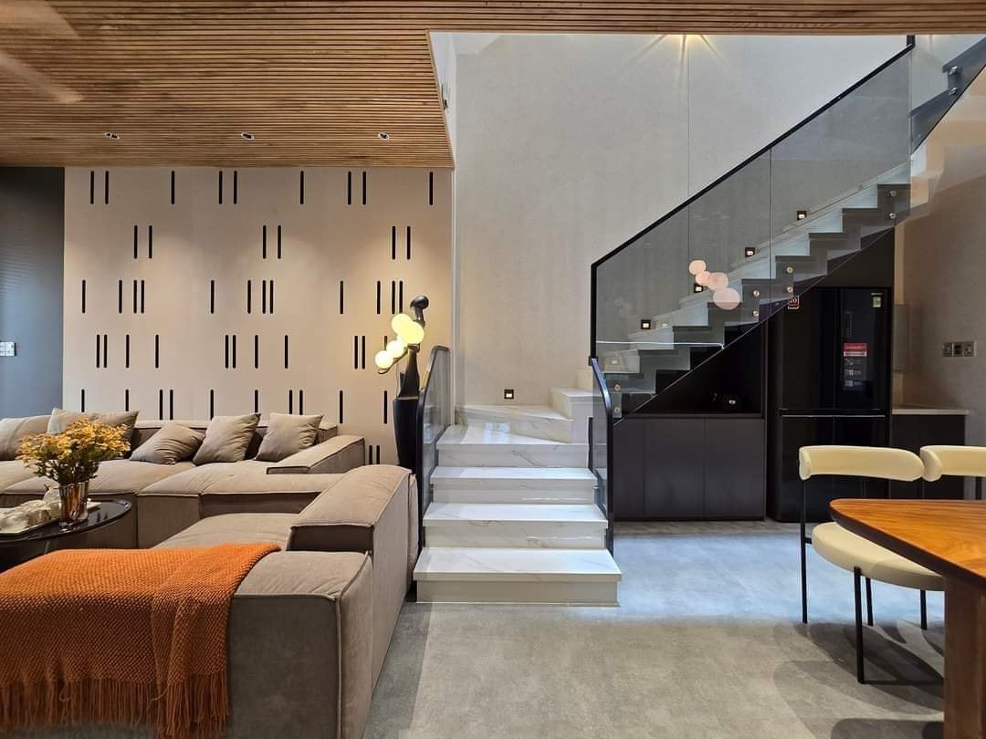 Vật liệu và màu sắc: Không gian là sự kết hợp tinh tế giữa các vật liệu và tông màu tương phản.