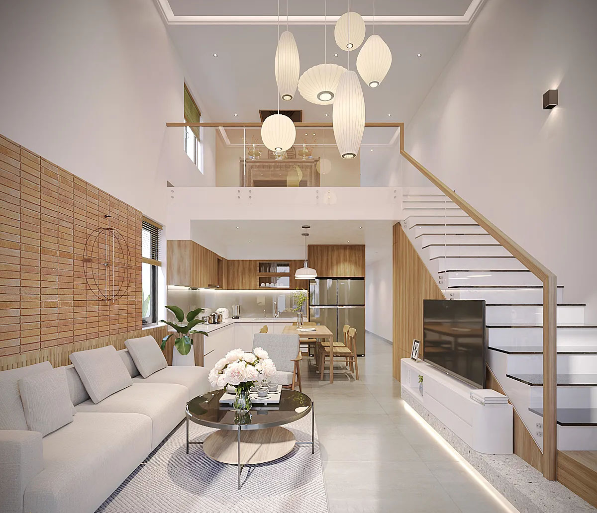 Sự kết hợp khéo léo giữa các món đồ nội thất thông minh, với khả năng tích hợp cao, không chỉ giúp tối ưu hóa không gian nhà gác lửng hiện đại mà còn mang đến sự tiện nghi, dễ sử dụng. Vật liệu chính được sử dụng như conwood và gỗ màu sáng không chỉ mang lại cảm giác hiện đại, mà còn tạo không gian sống nhẹ nhàng và ấm áp, đem lại cảm giác an yên cho gia chủ.