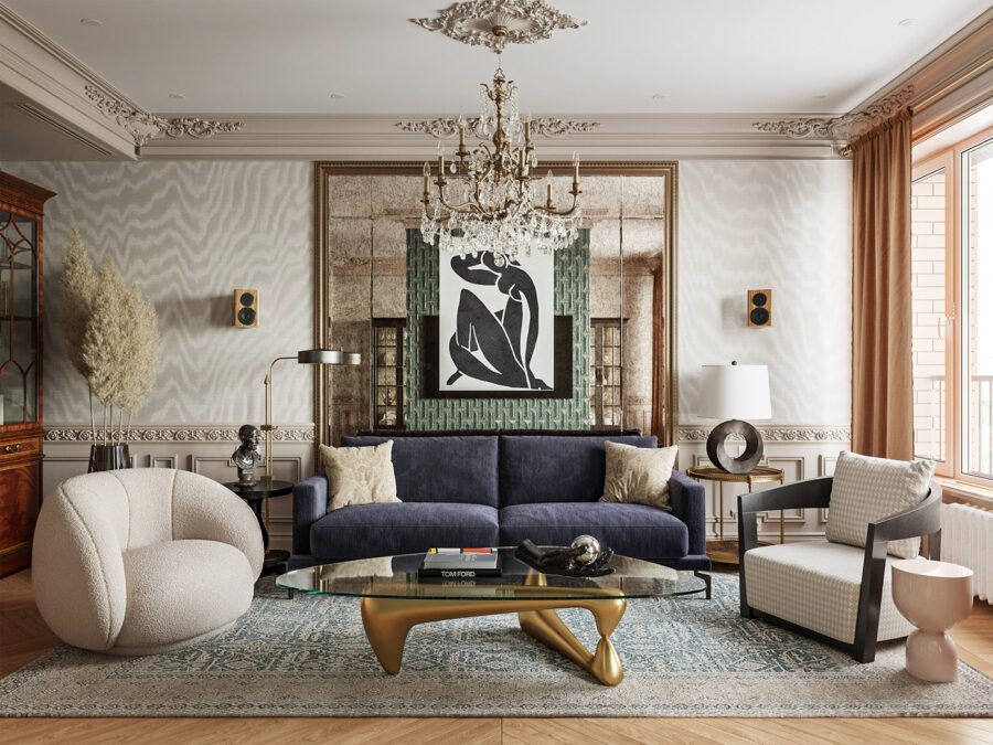 Sự cân đối và hài hòa trong bố trí không gian là yếu tố không thể thiếu trong phong cách tân cổ điển. Khi sắp xếp nội thất, cần đặc biệt lưu ý: