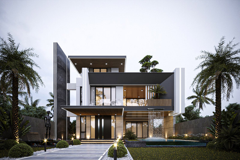 Phong cách hiện đại hướng đến sự tối giản, mạnh mẽ và sáng tạo. Mẫu biệt thự 3 tầng nông thôn hiện đại thường sử dụng các hình khối vuông vức, mặt tiền thoáng rộng với nhiều kính và lam chắn nắng. Không gian mở được tối đa hóa, kết nối trong và ngoài liền mạch, đem đến không gian sống thoáng đãng và trẻ trung.