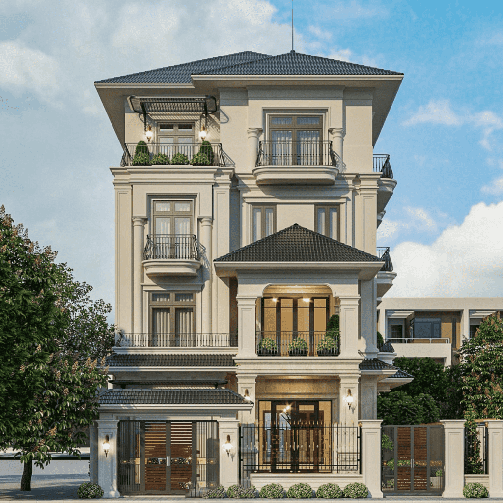 Mẫu thiết kế biệt thự 4 tầng mái thái