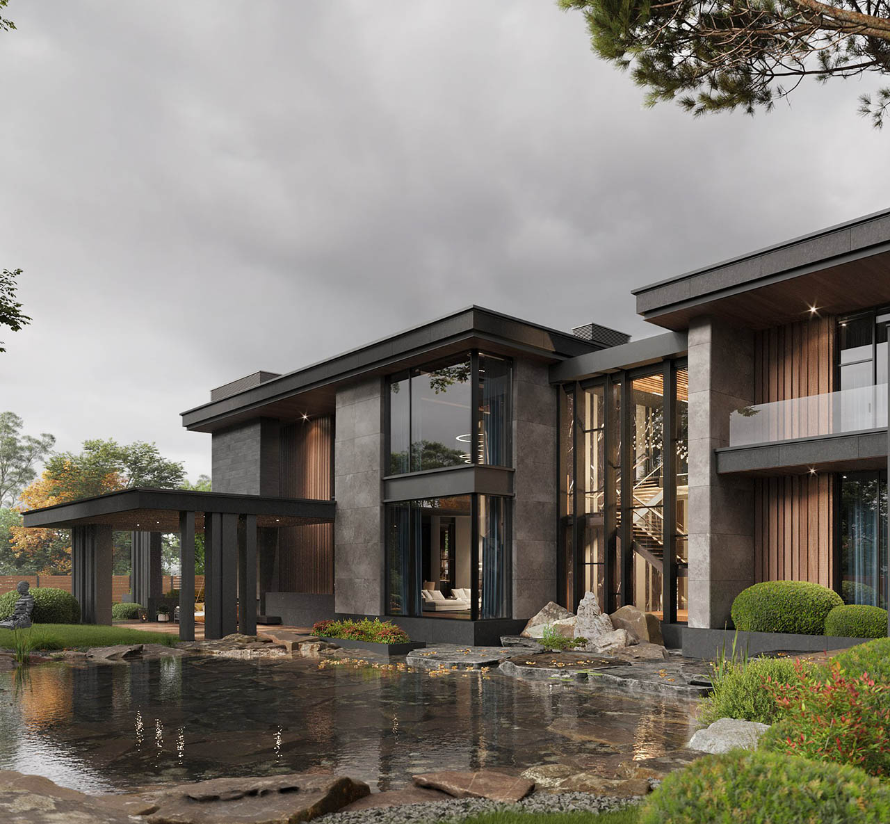 Thiết kế biệt thự sân vườn kiểu Nhật tích hợp hồ cá Koi mở ra một không gian sống an yên nhưng không kém phần đẳng cấp