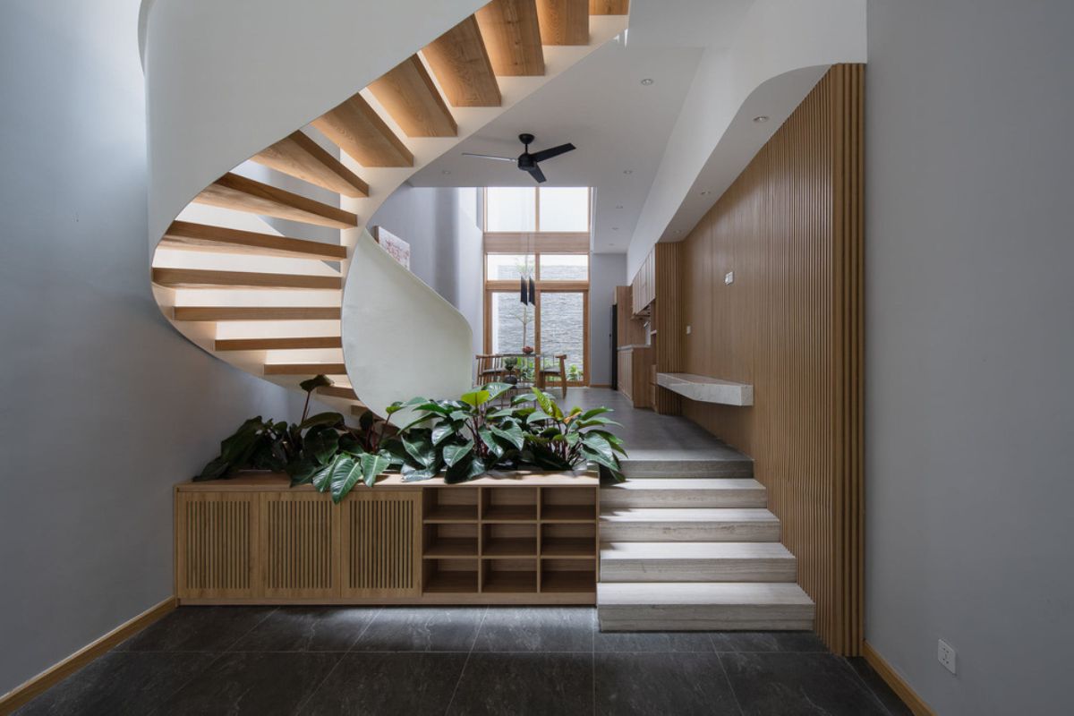 Mẫu cầu thang phong cách hiện đại hình xoắn ốc tạo điểm nhấn nghệ thuật cho khu vực trung tâm của ngôi nhà
