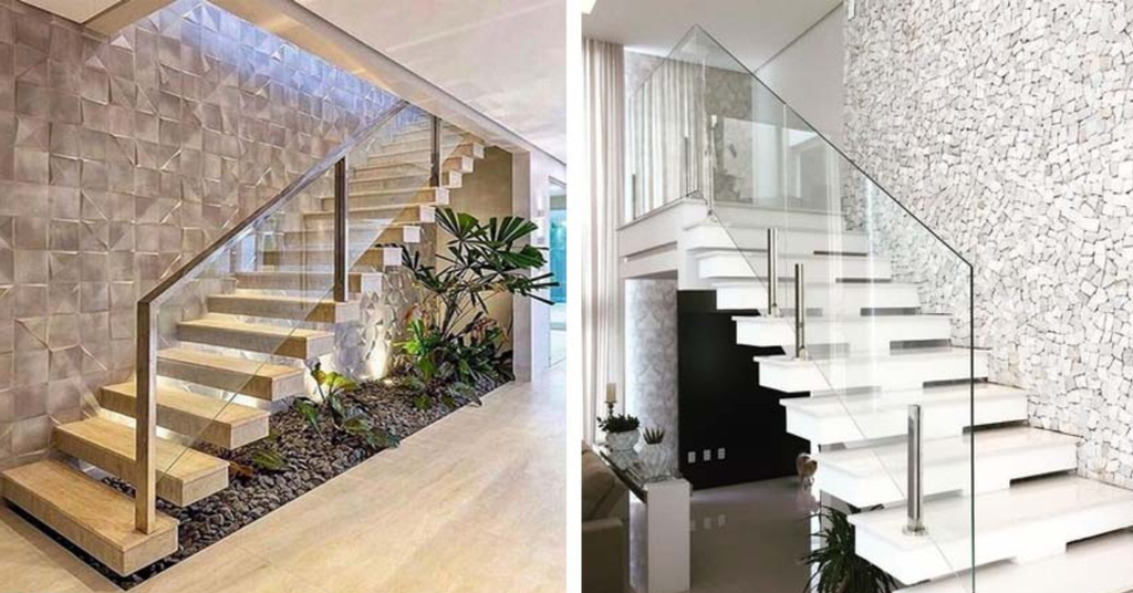 1.8. Cầu thang kết hợp kính phong cách hiện đại