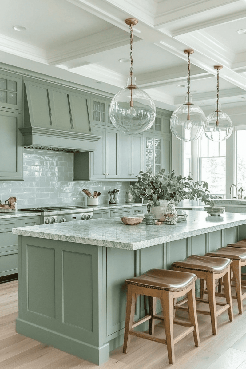 Phòng bếp màu xanh lá cây nhạt tươi mát