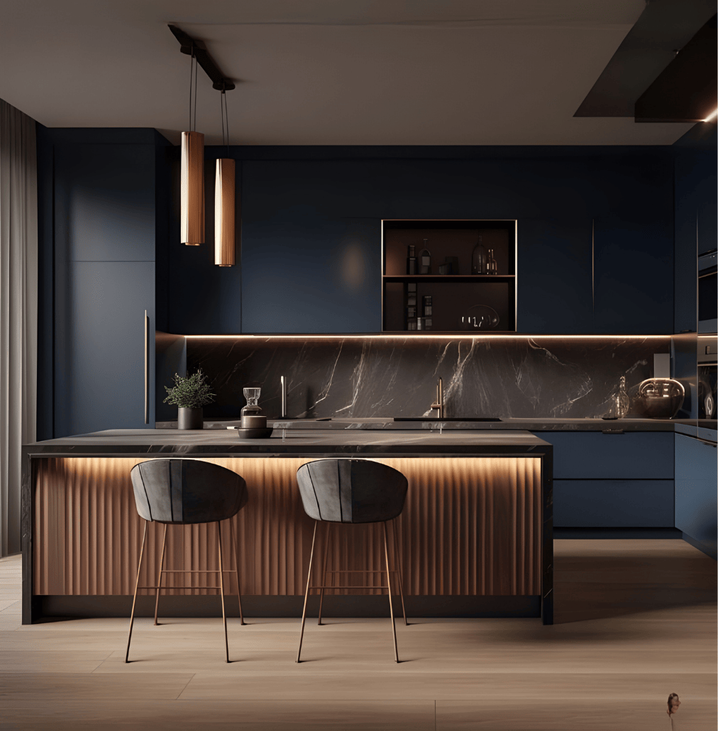 5. Bếp màu xanh dương hiện đại, tinh tế