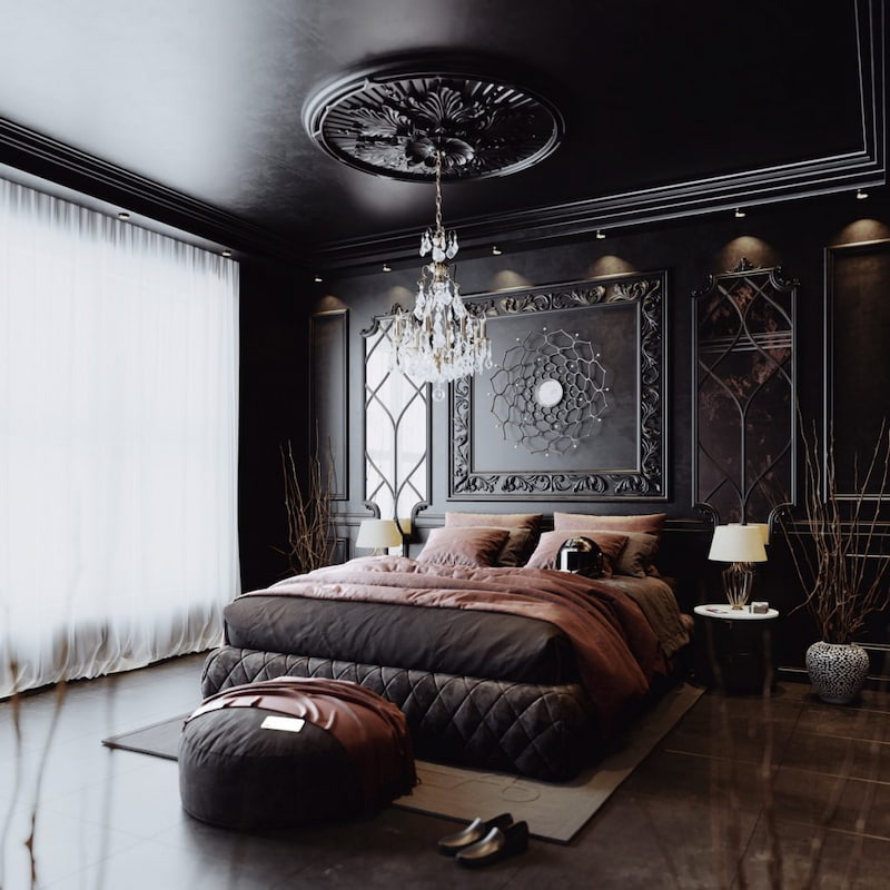 Không gian phòng ngủ sang trọng với tông màu tối sang trọng và mạnh mẽ.jpg)