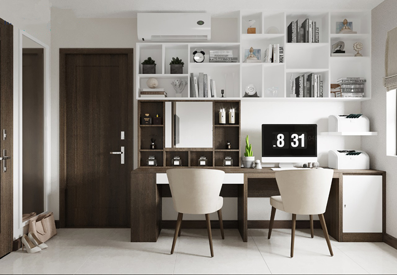 Nếu bạn là người thường xuyên phải làm thêm giờ hoặc là freelancer tại nhà thì sở hữu một phòng làm việc riêng là vô cùng cần thiết. Theo đó, nếu tính chất công việc yêu cầu sự tập trung cao độ thì phòng làm việc cần được sử dụng gam màu trầm ấm, màu sắc nội thất hài hòa.