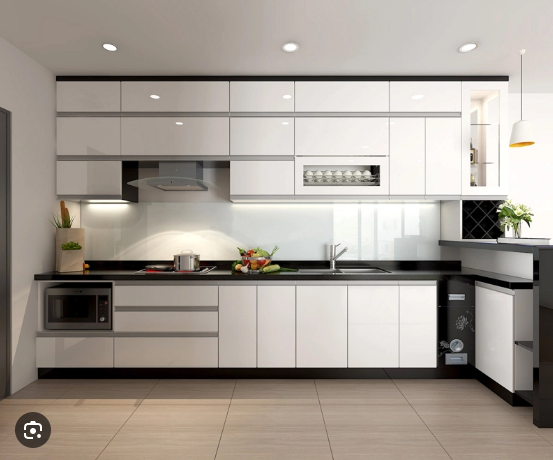 Với phòng bếp nhỏ, kiểu chữ L được lựa chọn và ứng dụng nhiều nhất. Vừa đáp ứng được tính tiện lợi, thiết kế này còn phù hợp hơn cả với những thiết kế bếp theo phong cách hiện đại.