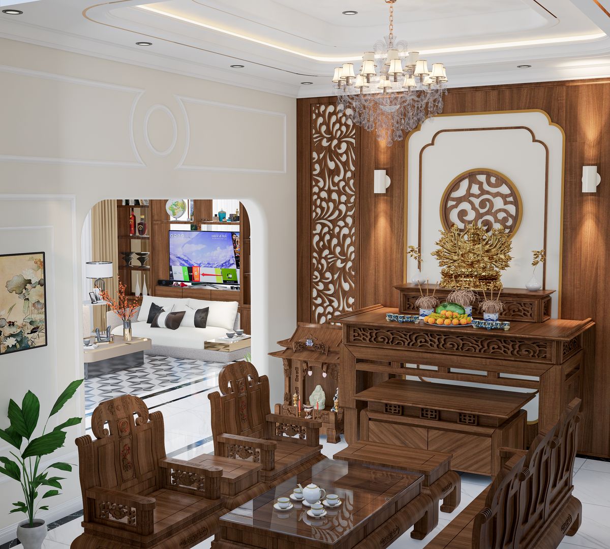 Việc bố trí bàn thờ trong phòng khách không chỉ là bài toán thẩm mỹ, mà còn đòi hỏi sự am hiểu về phong thủy, công năng và sự hài hòa với tổng thể kiến trúc ngôi nhà.