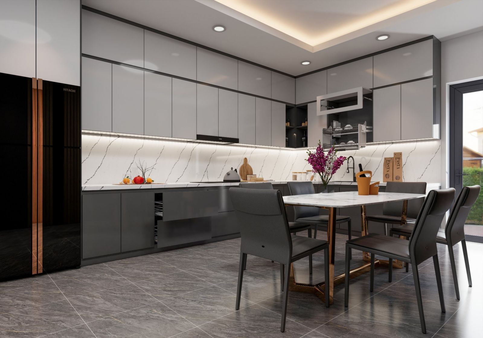 Ngoài phòng khách và phòng ngủ,nội thất phòng bếp cũng là không gian cần lưu ý bố trí nội thất tạo cảm giác sạch sẽ, thoáng đãng mà vẫn đảm bảo sự ấm cúng trong những bữa cơm gia đình.