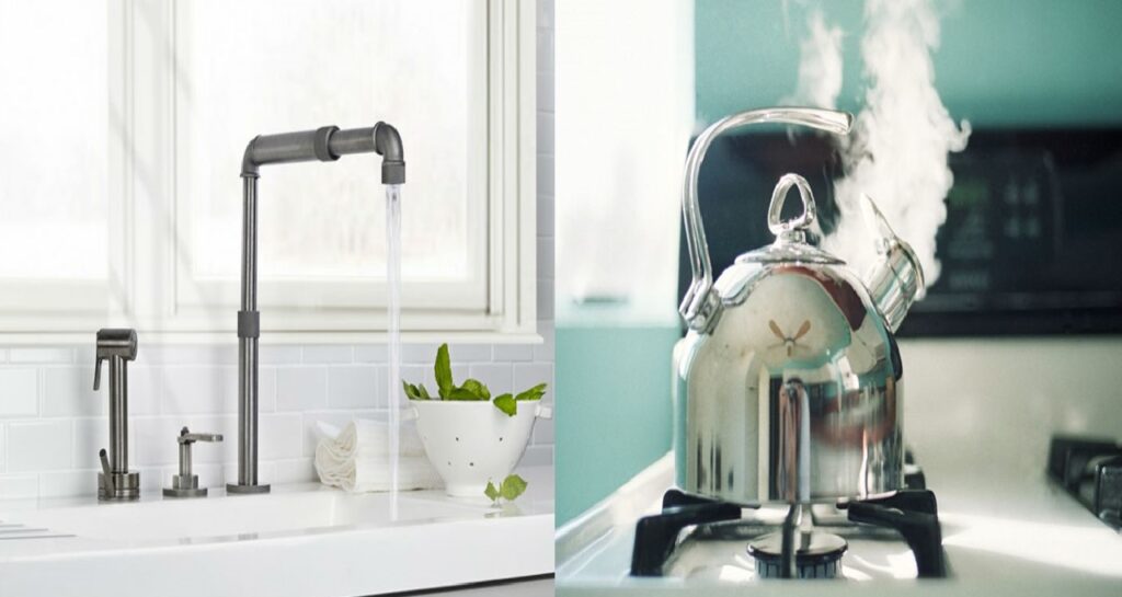 Bước 3: Đun nước sôi và mở các vòi nước