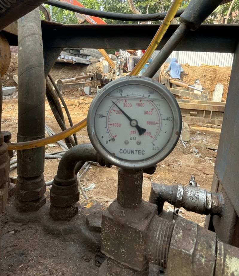 Sau khi các loại máy móc và cọc bê tông đã tập kết tại hiện trường, kỹ sư giám sát tiến hành xuất trình giấy tờ, chứng chỉ kiểm định của các máy móc thiết bị có liên quan như: Kiểm định áp kế, hiệu chuẩn máy ép cọc, bảng quy đổi lực ép...