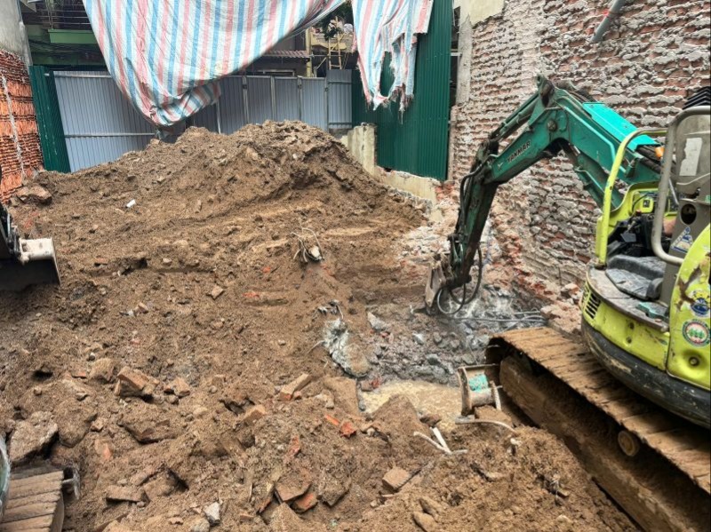 Bước 2: Thi công đào lật móng cũ, chuẩn bị mặt bằng ép cọc