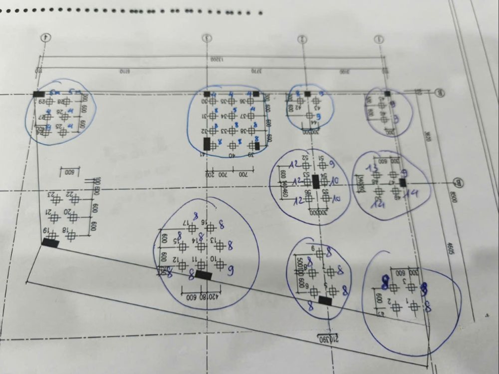 Thực hiện ghi chú trực tiếp trên bản vẽ sơ đồ cọc ép