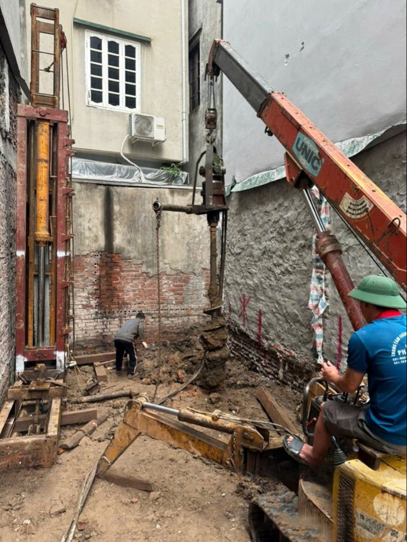Công tác khoan dẫn nhằm giảm thiểu tác động đến nền đất cũng như ảnh hưởng đến công trình liền kề