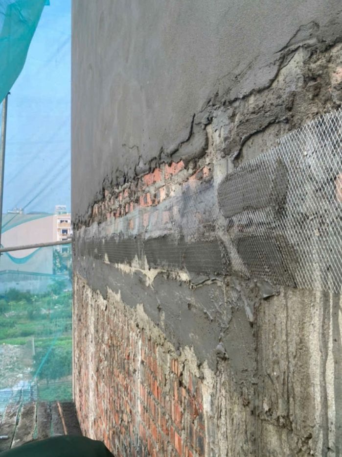 Đối với các khu vực chịu tác động mạnh mẽ của thời tiết như khu vực tầng thượng, việc dán lưới mắt cáo đóng vai trò quan trọng giúp giảm thiểu hiện tượng nứt, tách vữa.