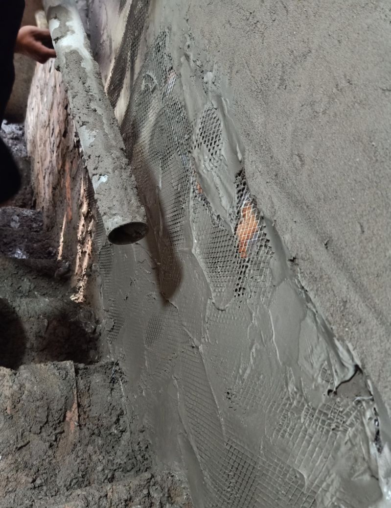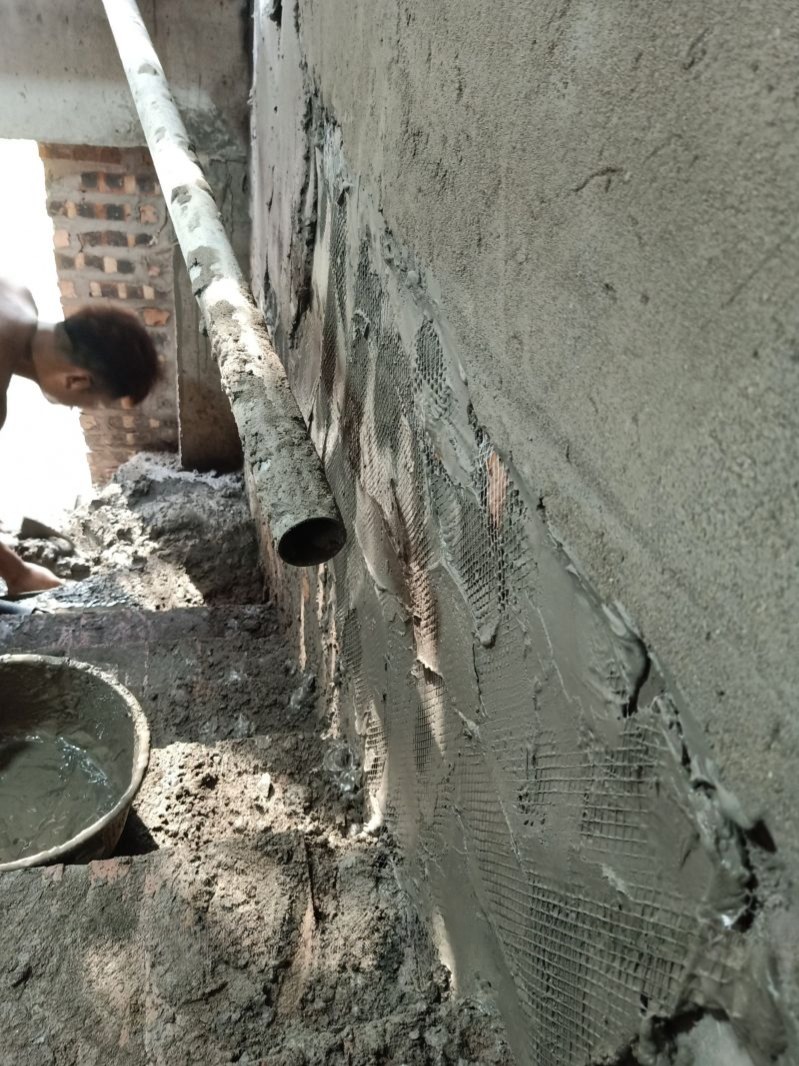 Đóng lưới thép khi thi công trát tường ô giếng trời là giải pháp giảm thiểu hiện tượng nứt, tách vữa gây thấm tại khu vực này