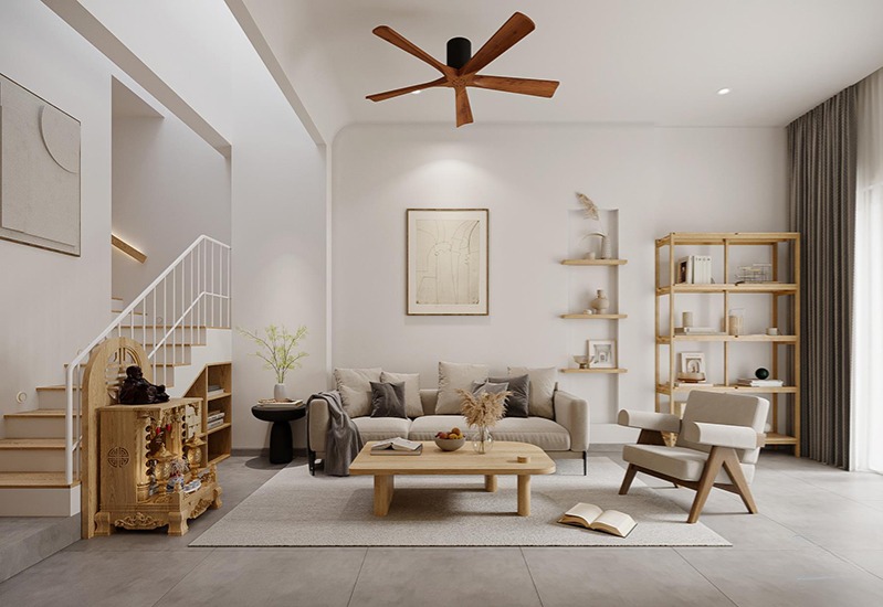 Thi công nội thất phòng khách với gỗ tự nhiên