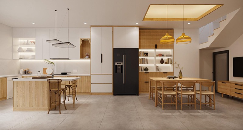 Trong văn hóa của người Việt, bếp lửa luôn gắn liền với cuộc sống gia đình đầm ấm, hạnh phúc. Đây là nơi cả gia đình cùng sum vầy trong những bữa ăn đoàn viên. Bởi vậy, phòng bếp phải đảm bảo sự tiện nghi cũng như luôn thông thoáng, sạch sẽ.