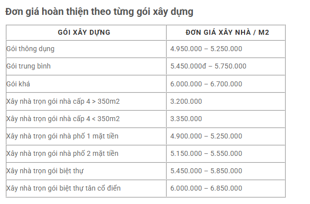 Đơn giá xây nhà trọn gói tại Huế thường dao động và phụ thuộc vào nhiều yếu tố: