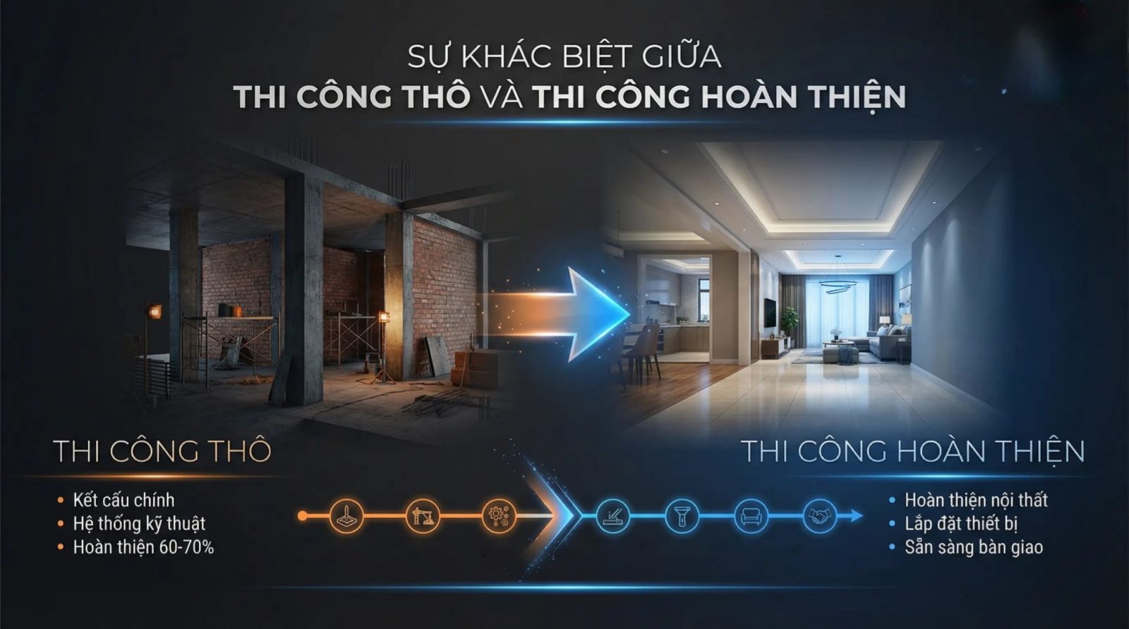 Hiểu một cách đơn giản, quá trình xây dựng một ngôi nhà giống như tạo ra một tác phẩm điêu khắc. Trước tiên, bạn cần tạo ra khung xương vững chắc, sau đó mới trau chuốt từng đường nét để tạo nên vẻ đẹp hoàn mỹ. Thi công phần thô và thi công hoàn thiện chính là hai bước then chốt tạo nên điều đó.