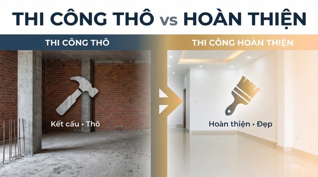 Tiêu chí phân biệt thi công thô và thi công hoàn thiện