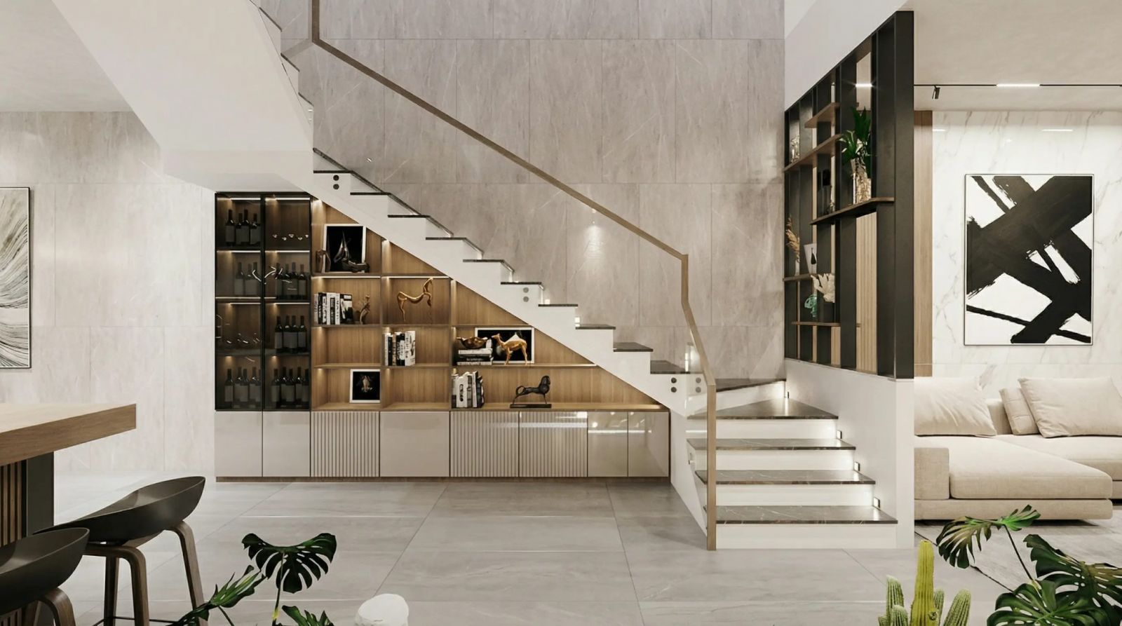 Trong kiến trúc nhà phố hiện đại, việc tối ưu từng mét vuông luôn là bài toán khiến nhiều gia chủ đau đầu. Gầm cầu thang thường bị bỏ quên hoặc chỉ dùng để chứa đồ lộn xộn, vô tình trở thành góc chết lãng phí.