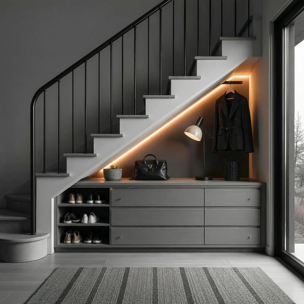 Thiết kế gầm cầu thang thành tủ lưu trữ đa năng
