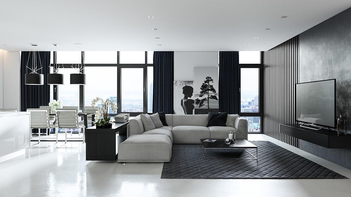 Với phong cách này, quy tắc 60-30-10 vẫn là kim chỉ nam. Nền nhà chiếm 60% với các màu trung tính như trắng sữa, ghi sáng, hoặc be. 30% tiếp theo là các gam màu phụ như xám tro, xanh lá cây nhạt trên sofa, rèm cửa.