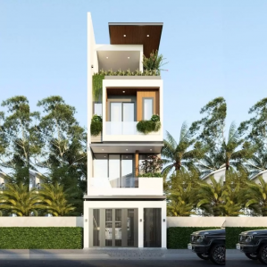 Nhà có dạng hình khối chữ nhật đứng, với chiều ngang hẹp và chiều sâu lớn, điển hình của kiến trúc nhà phố.Thiết kế theo phong...